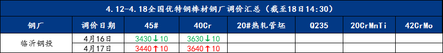 Mysteel快讯:全国优特钢棒材钢厂调价汇总(4.12-4.18)